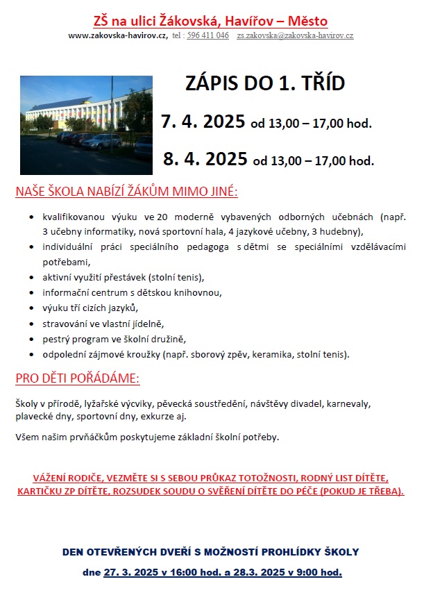 Více informací najdete také v sekci Škola – Zápis do 1. tříd.