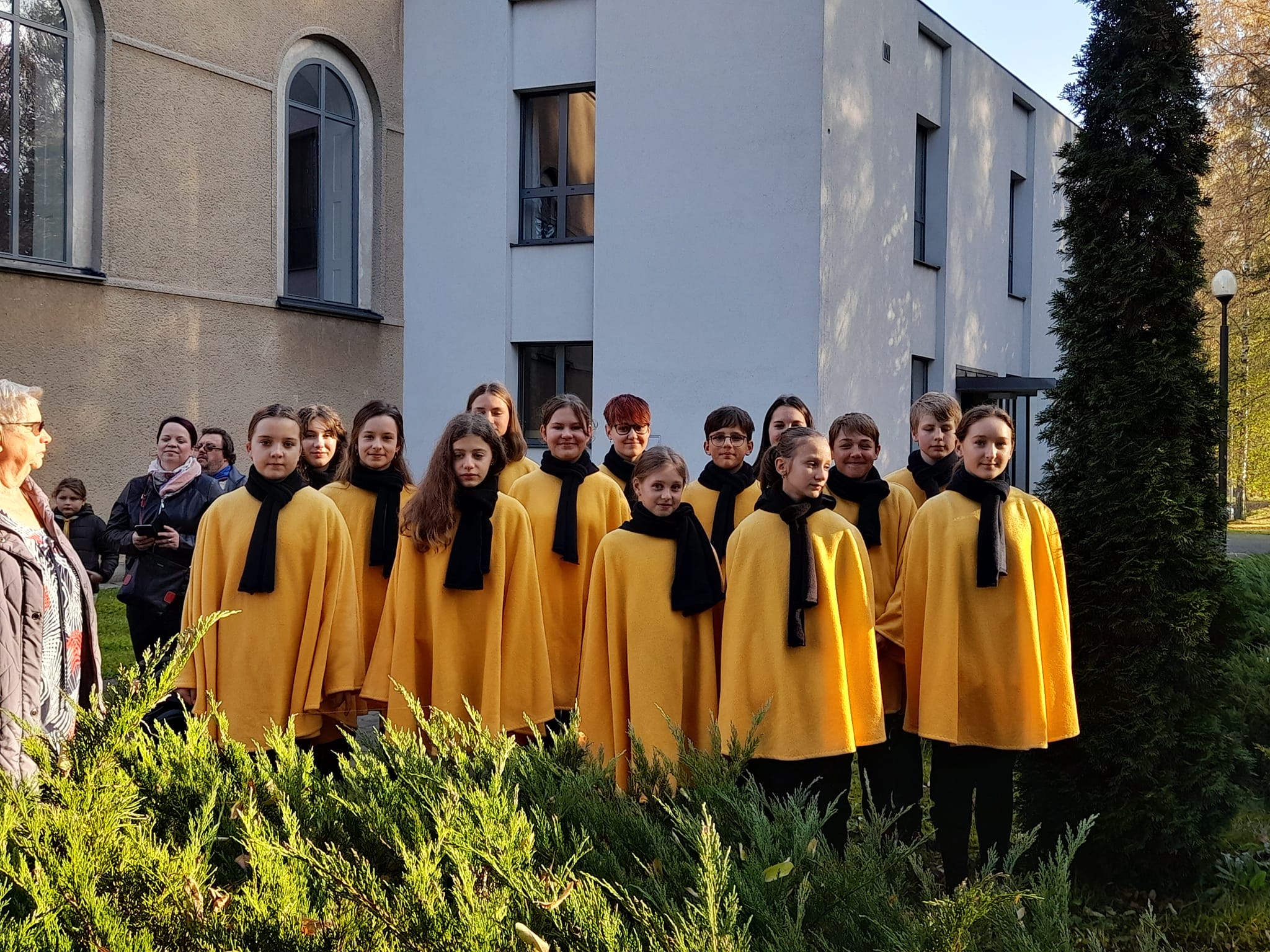 Zpívání při kladení věnců u kostela sv. Anny
